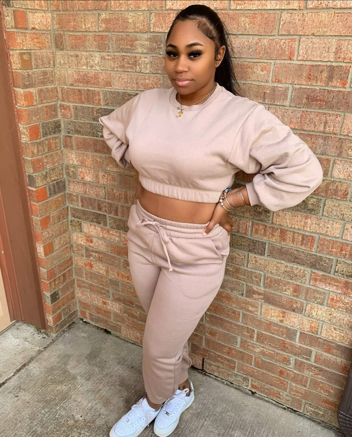Meet your new go-to set for looking cute without trying too hard. This two-piece lounge set features a cropped long-sleeve sweatshirt with a soft elastic hem, paired with high-waisted jogger pants designed for comfort and style. Made from a smooth, cozy fabric with just the right amount of stretch, this set moves with you while keeping a clean, flattering silhouette.